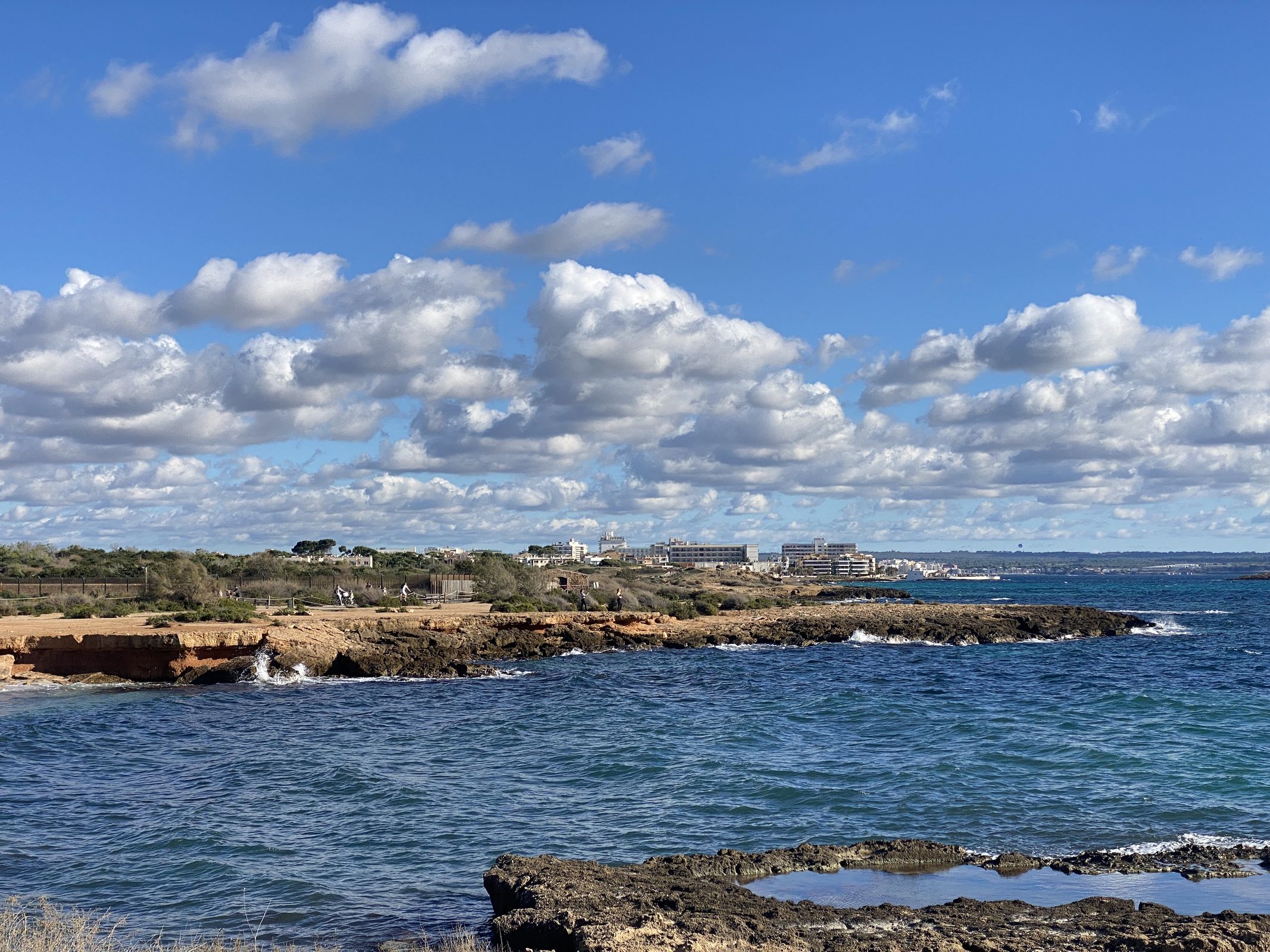 Vanaf daar loopt er een kustfietspad bijna volledig langs de rotsen terug naar Ca’n Pastilla. Ik dacht dat dit een functioneel en misschien saai stukje zou zijn, maar niets is minder waar. Het is juist een prachtig einde: je fietst langs de beroemde kathedraal (Basílica de Santa María), de haven met imposante jachten, gekleurde huisjes en mooie rotsformaties. Een perfect einde van mijn persoonlijke kennismaking met Mallorca.