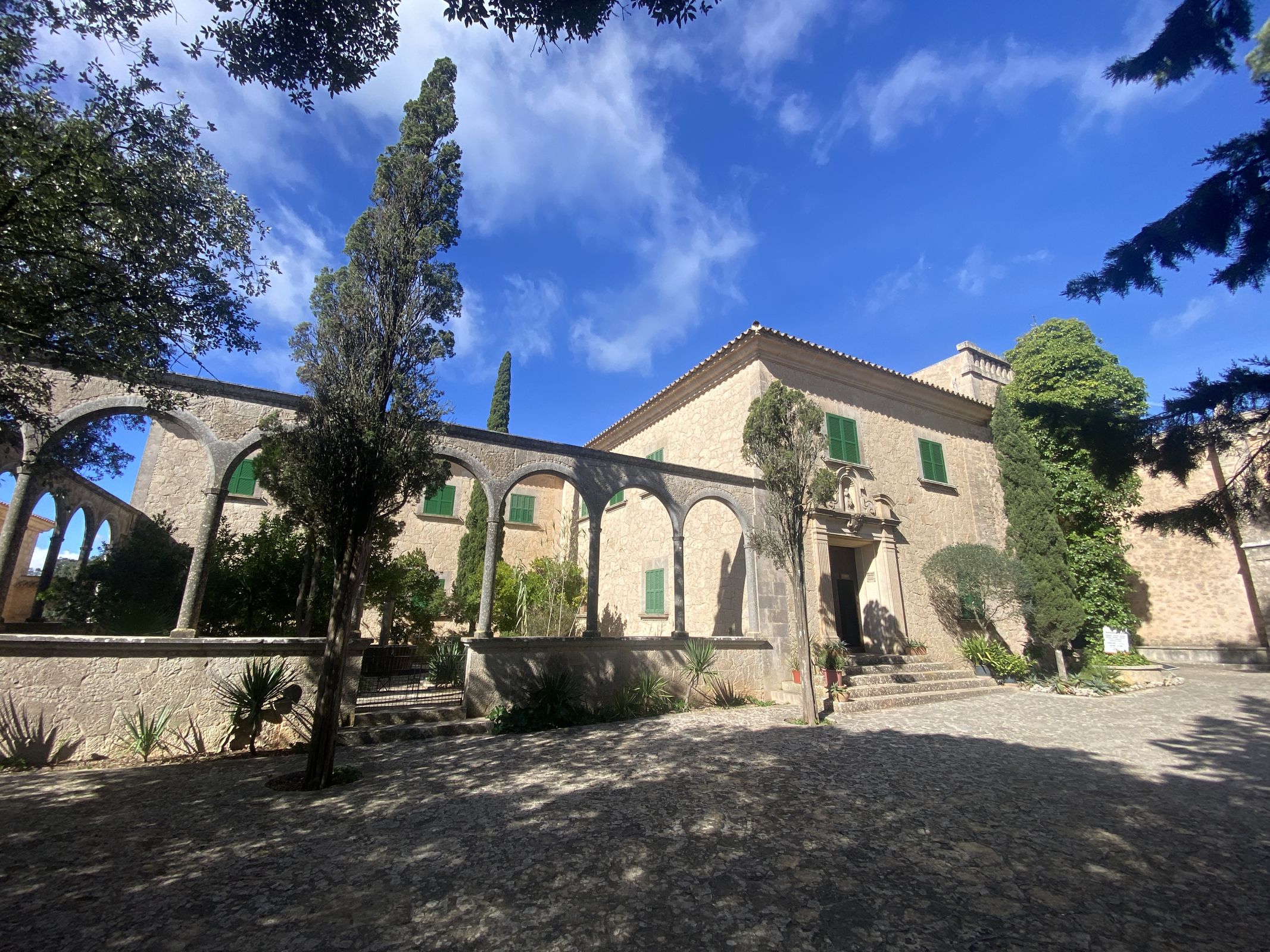 Vanuit Port de Pollença ben je snel uit de bebouwde kom voor de rustige klim naar Pollença. Dit oude dorpje is zeker een bezoek waard. Daarna volgt de langere beklimming van de Coll de Femenia, een mooie klim door de bossen met open stukken en uitzicht op de bergen. Deze klim brengt je naar het belangrijkste klooster van het eiland: Lluc. Het is ook de start van een van de vele Caminos de Santiago. Op het centrale binnenplein vind je Cafè Sa Plaça. Een ideale stop dus die het waard is om een paar honderd meter extra te fietsen om rond te kijken.