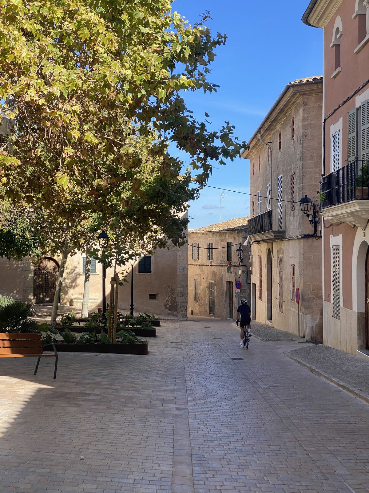 Net voor de beklimming van de Coll d’Honor kom je door Bunyola. Op het dorpspleintje vind je twee gezellige cafés: een fijne plek voor een ‘café doble’ (dubbele espresso) voordat je aan de klim naar Orient begint. Deze klim door dichte bossen is heerlijk rustig en gelijkmatig. Eenmaal voorbij Orient volgt de afdaling van de Coll d’Orient (6,1 km lang, gemiddeld 4,5%) naar Alaró. Ik sloot de dag af bij het 4-sterrenhotel El Cid met een biertje en uitzicht op de zonsondergang bij het strand.
