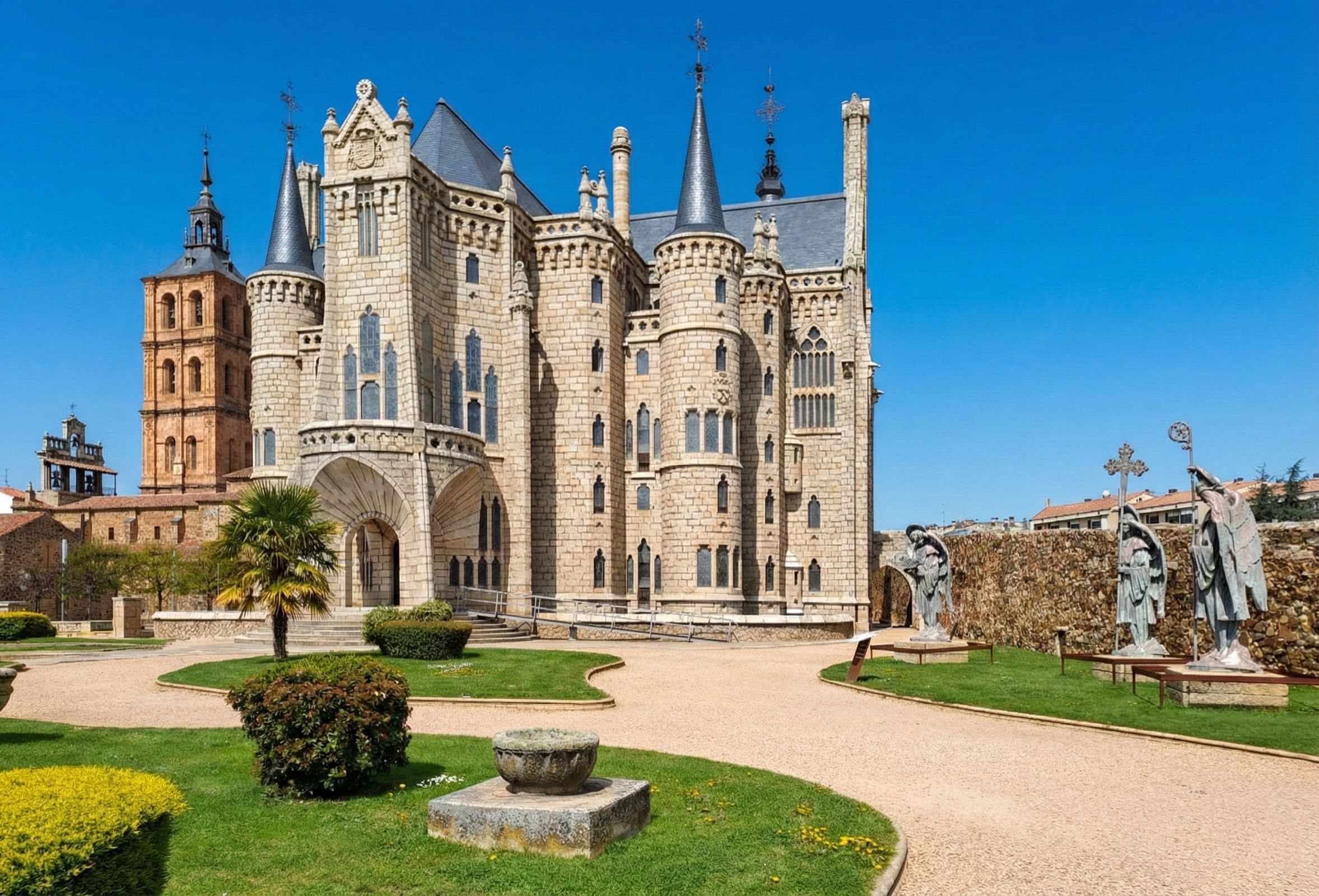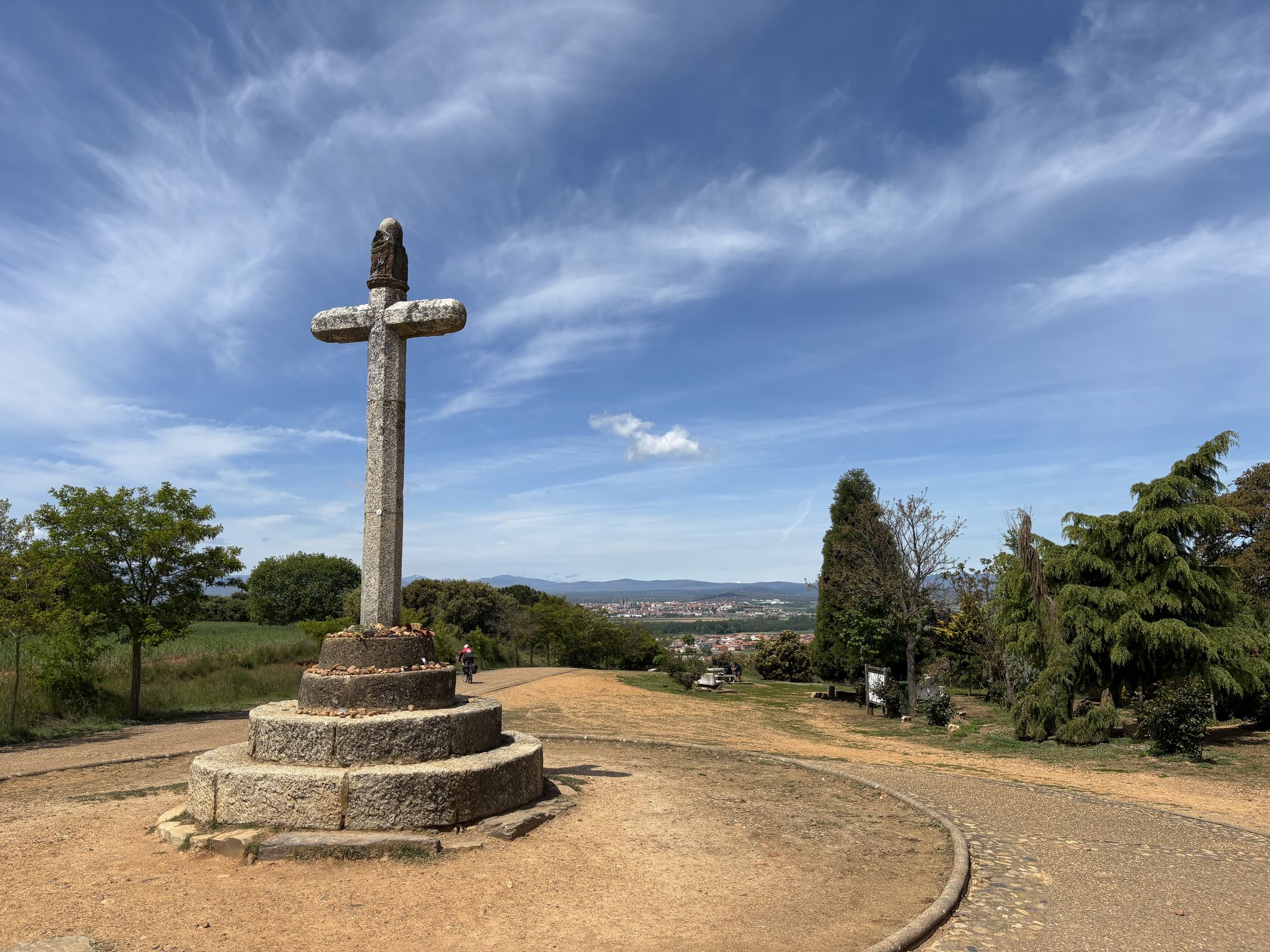 Je laat de grotere stad al snel achter je en fietst door een open landschap met kleine dorpen en boerderijen. Bij Hospital de Órbigo steek je een lange middeleeuwse brug over, een van de iconische plaatsen op de Camino. Daarna rijd je de streek Maragatería binnen, met zijn stenen huizen en eigen tradities. Astorga is compact en verrassend: naast de kathedraal staat het bisschoppelijk paleis van Gaudí en in de straten herinneren chocoladewinkels aan de tijd dat dit de “chocoladestad” van Spanje was.