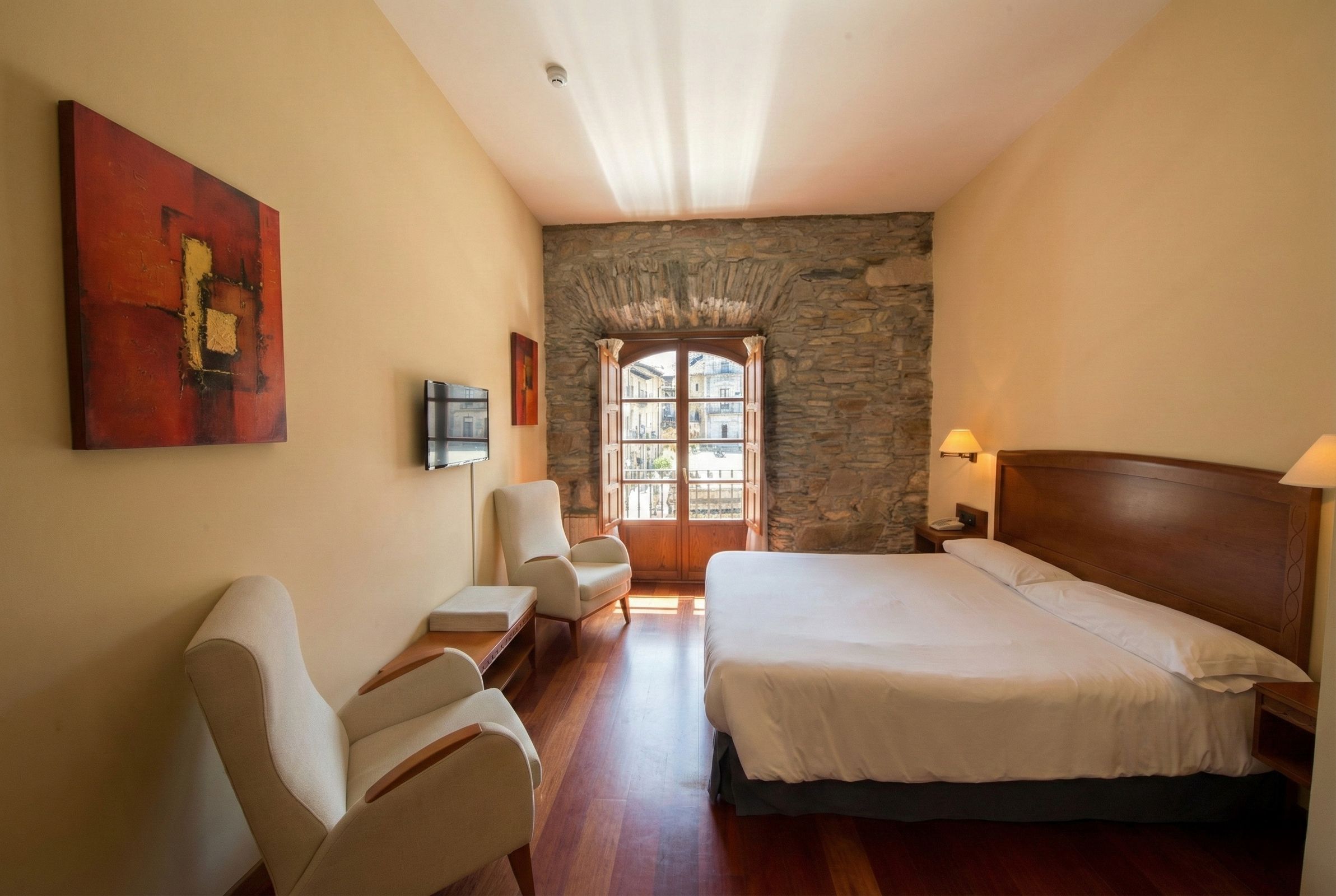 Tijdens je fietsvakantie verblijf je in sfeervolle accommodaties, variërend van knusse herbergen tot charmante familiehotels met gemiddeld drie sterren. Je slaapt ook soms in hotels met de focus op pelgrims, deze hebben dan 1 of 2 sterren. Hier vind je geen grote ketens, maar plekken met een warme, persoonlijke sfeer en unieke details die een thuisgevoel geven. Iedere locatie is met zorg gekozen, zodat je optimaal kunt genieten van comfort en gastvrijheid. Kamers hebben uiteraard een eigen badkamer (en suite).