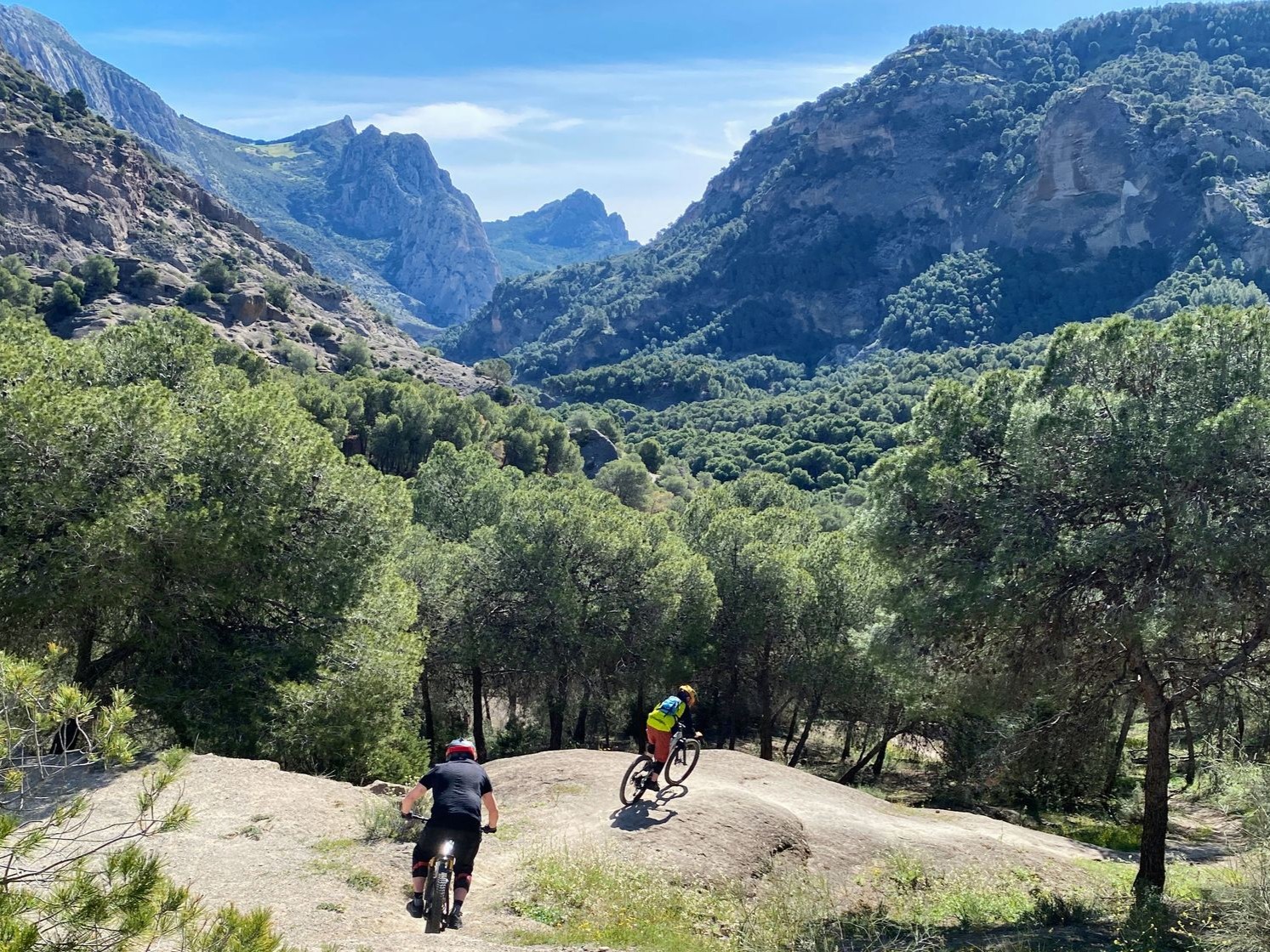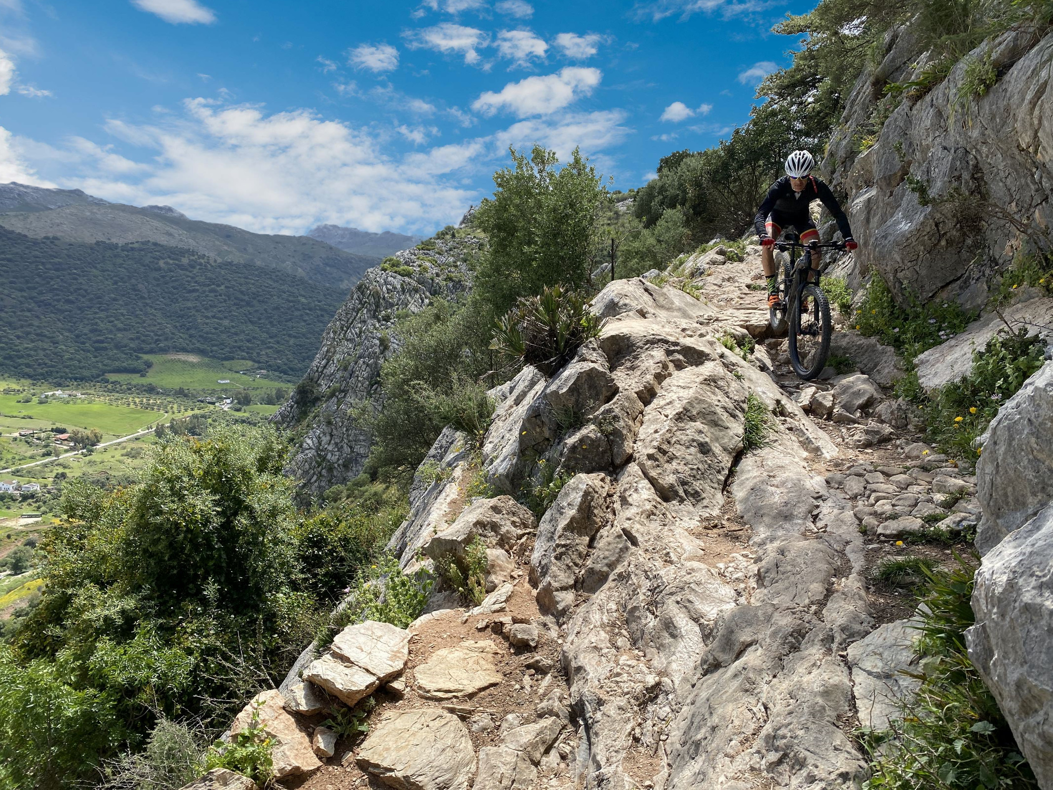 Deze meerdaagse tocht door Andalusië (Zuid Spanje) verbindt de ruige bergpaden van Ronda met de trails rond Mijas, vlak bij de kust. In plaats van één regio, doorkruis je een afwisselend terrein: van stille bossen en gravelwegen tot technische singletracks met uitzicht op diepe kloven en stuwmeren. Onderweg rijd je door witte dorpen als El Burgo, Ardales en Mijas, passeer je de rotspartijen van El Chorro en steek je twee bergketens over – de Sierra de las Nieves en de Sierra de Mijas. Je eindigt op een steenworp van Malaga en de Costa del Sol.
